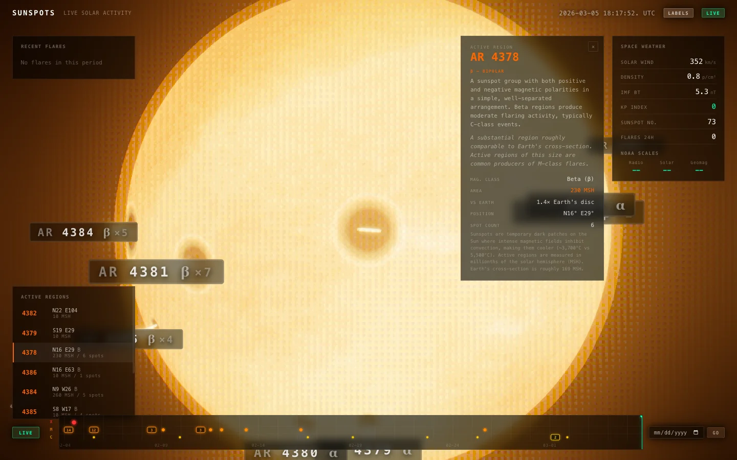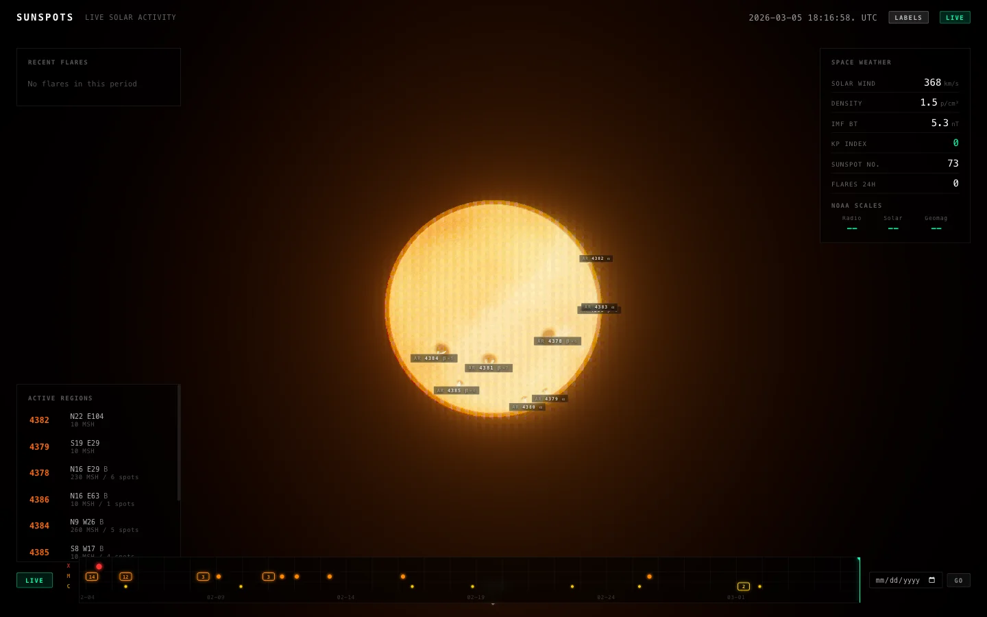 It’s an interactive 3D sun in the browser, plotting real sunspot locations and solar flares using live NASA/NOAA data. No API keys, all free public endpoints.