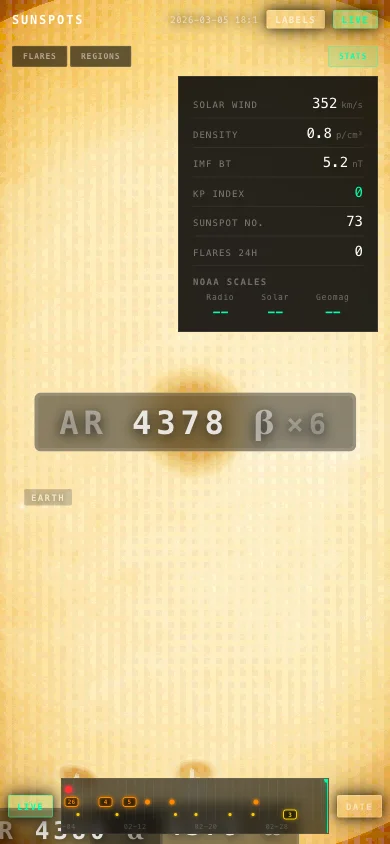 I wanted something you could glance at and immediately know what the Sun is doing, so I built Sunspots.